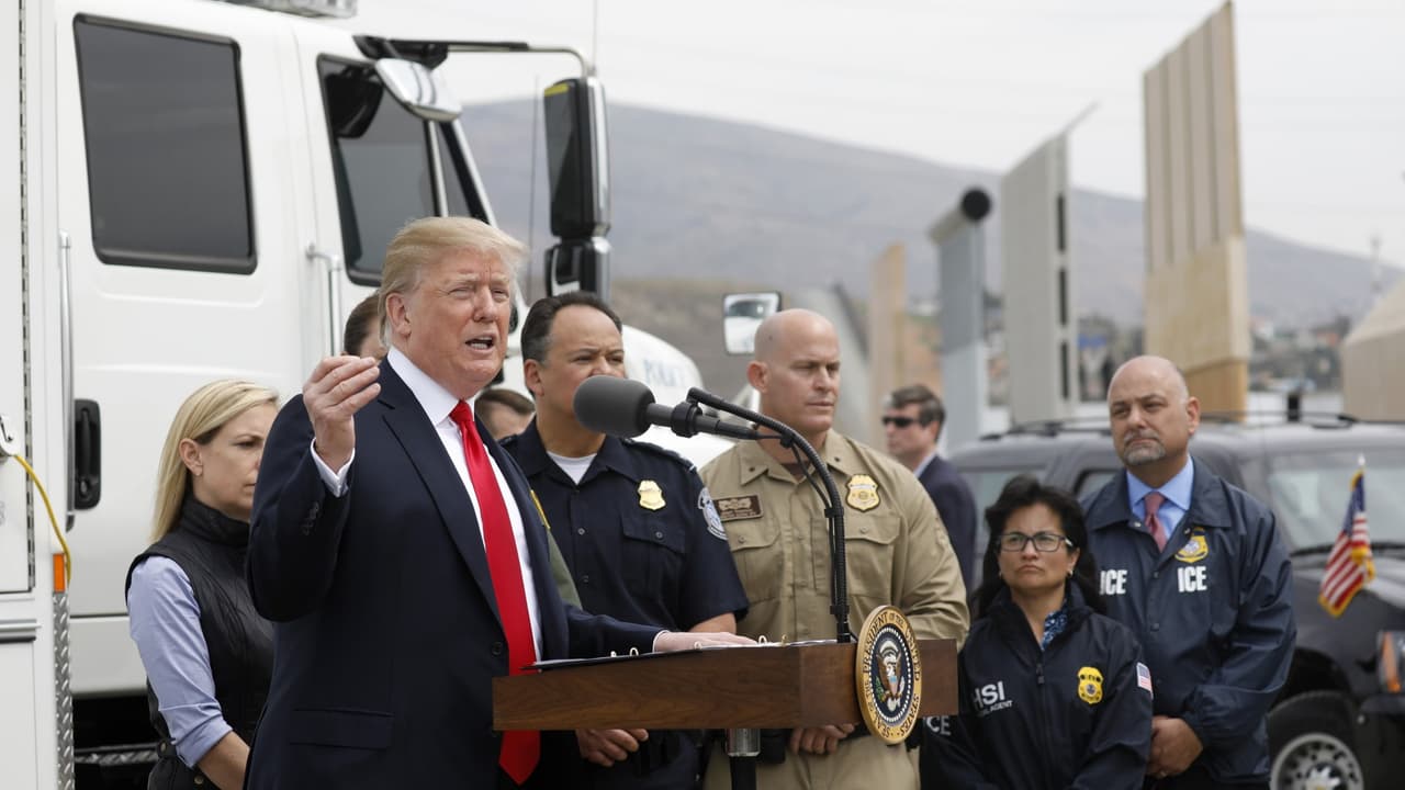 El presidente inspeccionó los ocho prototipos de la frontera, que fue una de sus promesas de campaña y se ha convertido en un grito de guerra para sus partidarios.