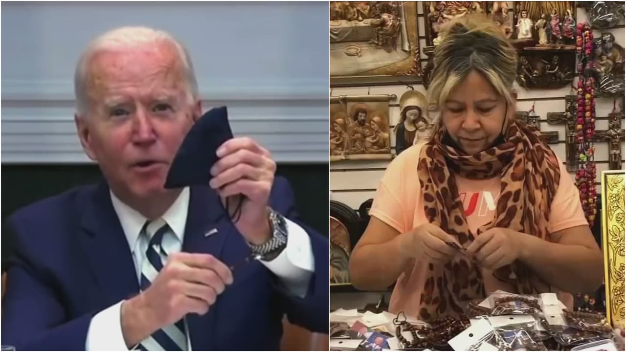 La pulsera tiene la imagen de la Virgen de Guadalupe y las personas que la compran le oran con fe para que los presidentes de México, Andrés Manuel López Obrador, y de Estados Unidos, Joe Biden, logren acuerdos que beneficien a los inmigrantes.