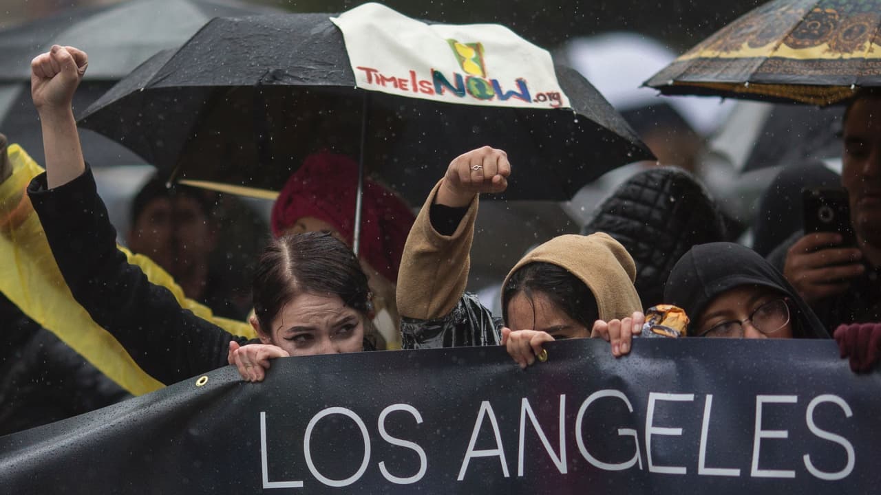 La tormenta no detuvo a manifestantes de Los Ángeles que niegan a Trump como su presidente