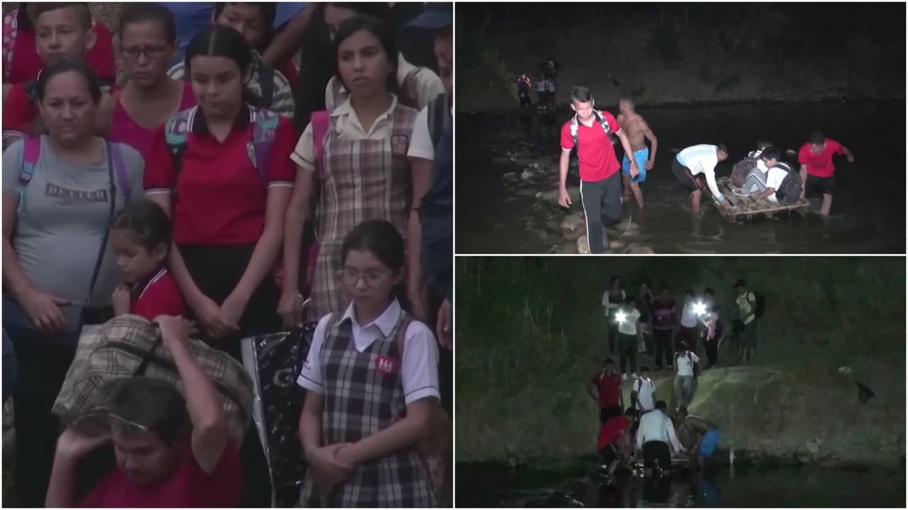 En improvisadas balsas cruzan el Río Táchira que marca la línea fronteriza entre los dos países. Viven del lado venezolano y estudian en el colombiano, pero como la frontera continúa bloqueada les toca pasar el afluente arriesgando sus vidas para poder ir a la escuela. La Guardia Nacional Bolivariana ha instalado más barreras en los puentes Simón Bolívar y Francisco de Paula Santander, y recientemente cerró el puente La Unión.