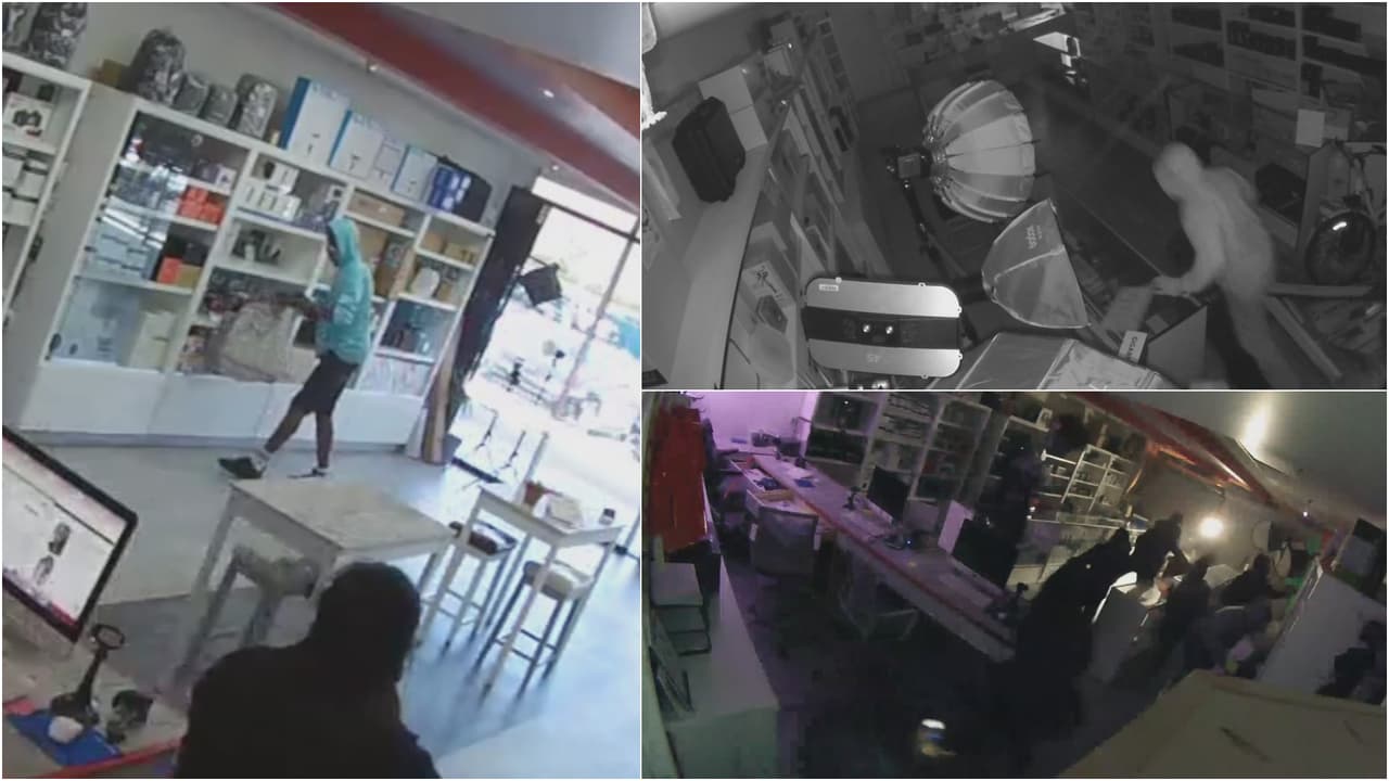 Las cámaras de seguridad de la tienda Mac Star Camera and Electronics, ubicada en Corona, California, captaron el momento en el que un grupo de 15 delincuentes estrella un vehículo contra su fachada para posteriormente ingresar y hurtar lo que había en el lugar. Una de las empleadas del negocio asegura que es la séptima ocasión en los últimos dos años que son víctimas de los ladrones.