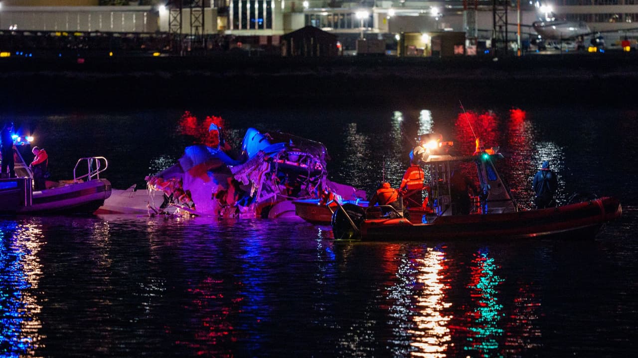 Las primeras imágenes de los restos del avión que chocó en el aire con un helicóptero militar en Washington DC