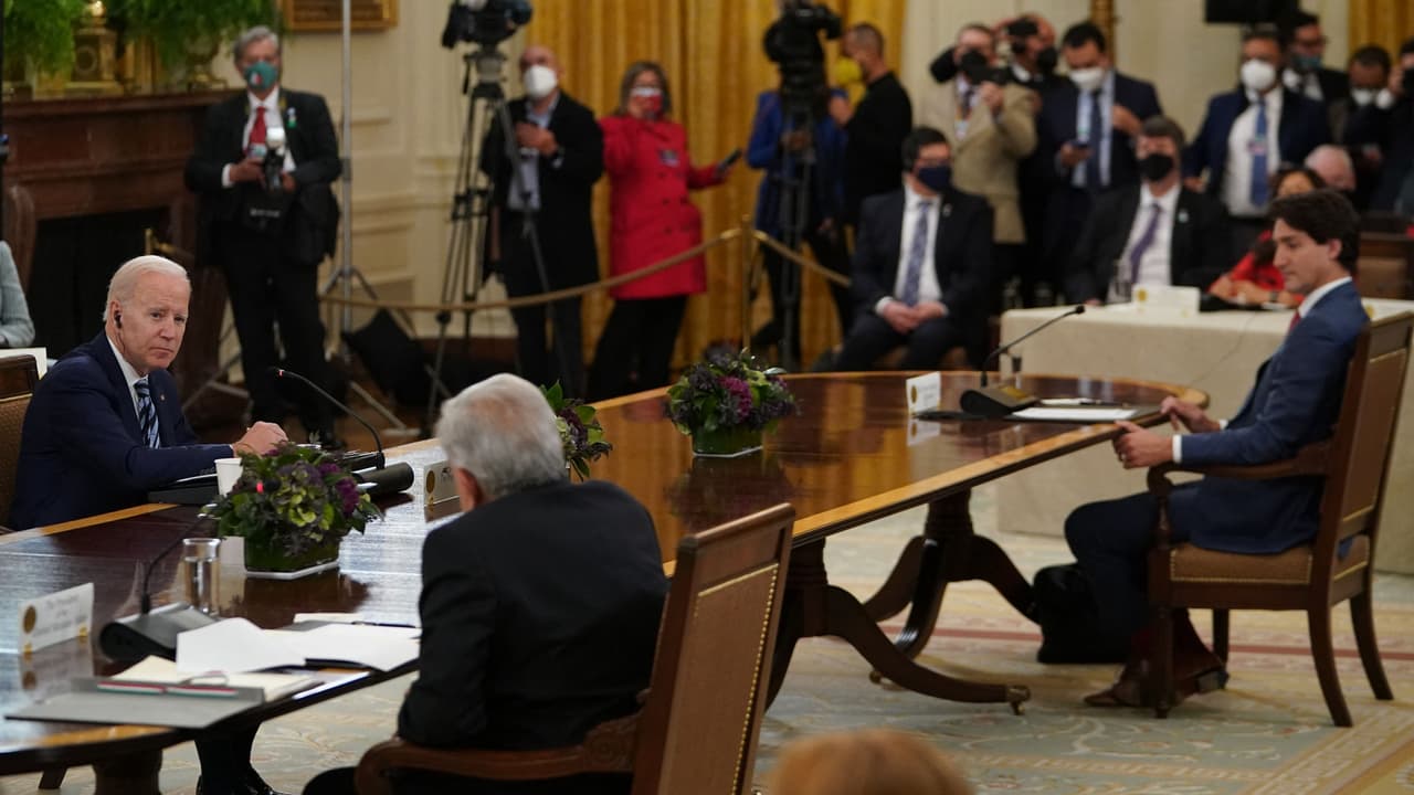 Joe Biden, Andrés Manuel López Obrador y Justin Trudeau trataron temas como inmigración, economía, coronavirus, comercio y cambio climático, entre otros. El mandatario mexicano agradeció a su homologo estadounidense por la cooperación en algunos asuntos migratorios y por no tratar a su país como el "patio trasero".