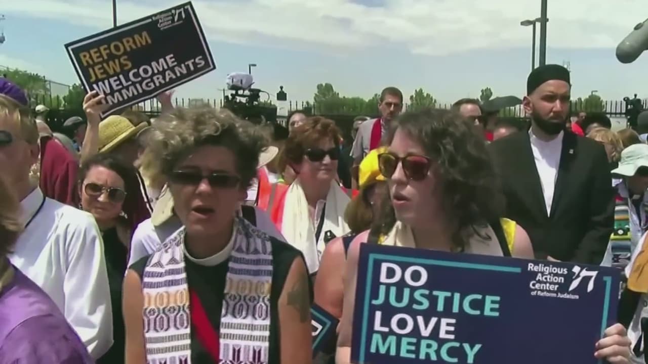 "¡Liberen a los niños!": líderes religiosos protestan frente a un centro migratorio en Texas