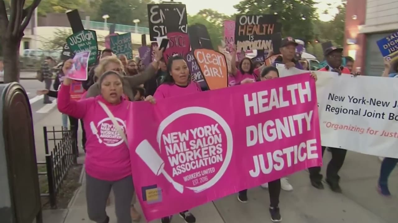 Decenas de empleadas de salones de uñas salieron a protestar en Harlem asegurando que no les pagan por horas ni por días de enfermedad, únicamente reciben propinas y un porcentaje por cada clienta que atienden en un periodo de 12 horas por jornada. Además, dicen estar expuestas a químicos como tolueno y formaldehído, los cuales pueden afectar diferentes órganos como el corazón y hasta causar cáncer. También aseguran que sus empleadores no proveen el equipo de protección adecuado.