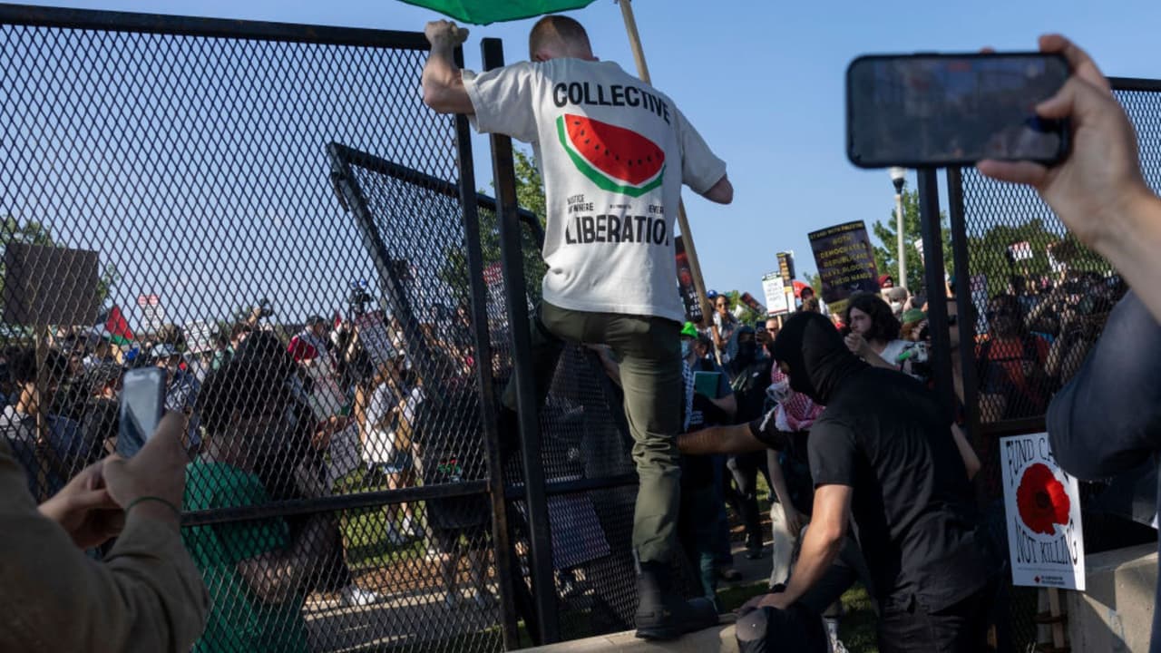 Cientos de personas se manifestaron en Chicago durante el primer día de la Convención Nacional Demócrata. Un grupo de manifestantes derribó una valla de seguridad en el perímetro exterior del United Center, sede del evento político. De inmediato agentes de la policía del Capitolio y uniformados antimotines del Departamento de Policía de Chicago controlaron la situación y detuvieron a varias personas.