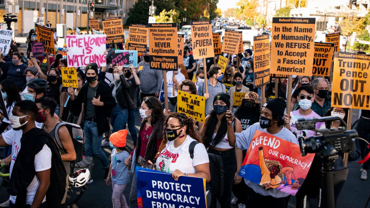 Con música y pancartas, decenas de activistas se han reunido en Black Lives Matter Plaza para exigirle a Donald Trump que acepte una eventual derrota sin ningún tipo de excusa. Algunos, que ya dan como ganador al candidato demócrata, le piden a Biden que durante el inicio de su gestión cumpla con las promesas de inmigración que hizo a lo largo de su campaña.