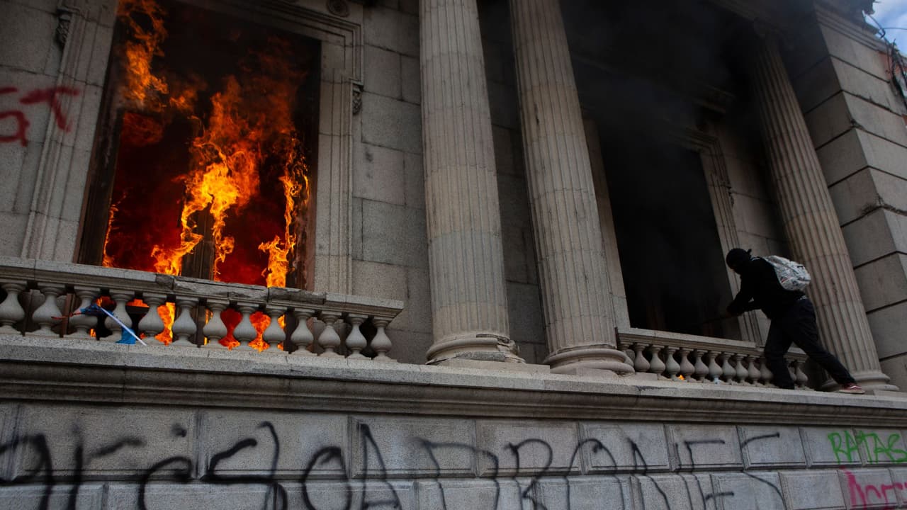 Este domingo, cientos de personas llegaron hasta la Plaza de la Constitución para exigir la renuncia del presidente guatemalteco, Alejandro Giammattei. Las manifestaciones comenzaron luego de la aprobación del presupuesto de 2021 que hizo grandes recortes a los sectores de educación y salud en medio de la pandemia.