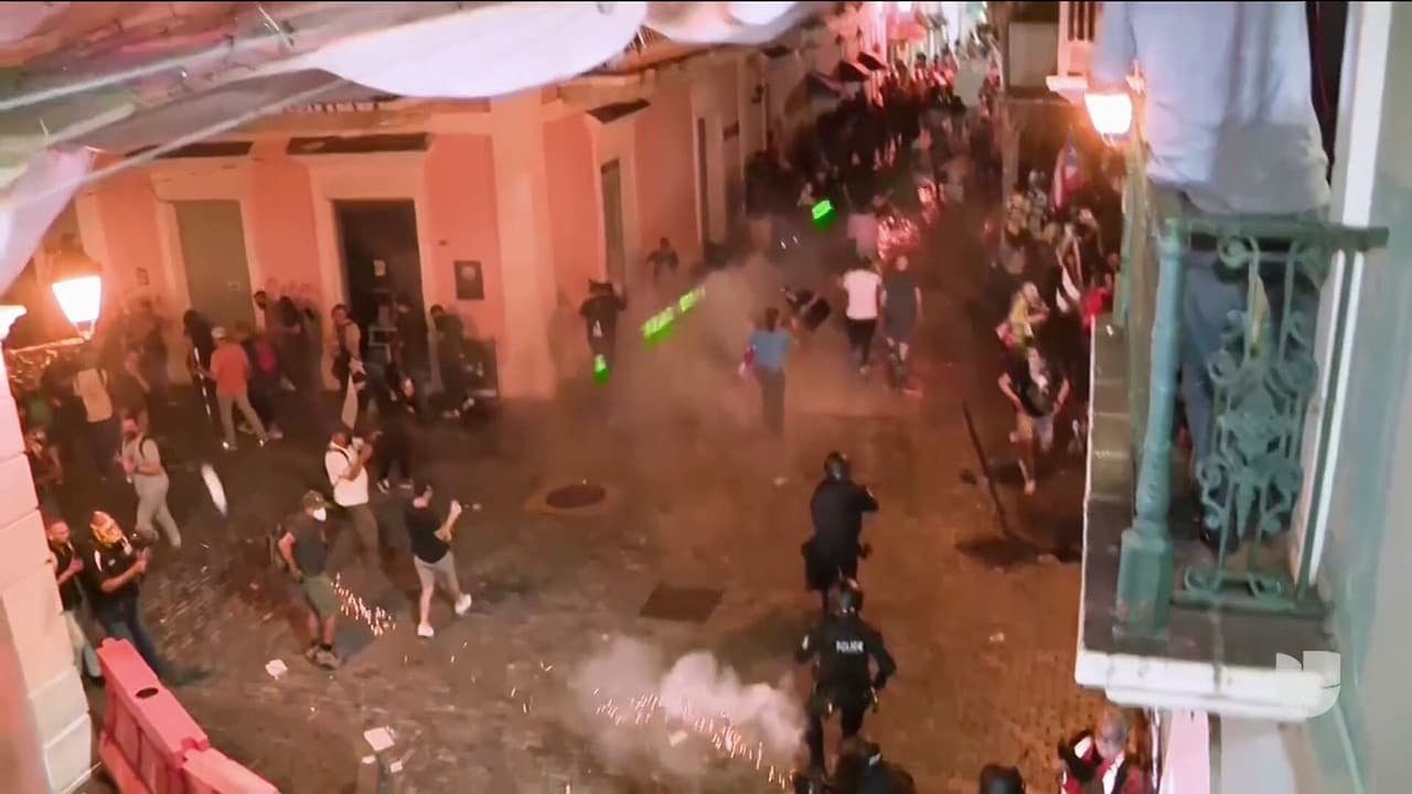 La calle de la Fortaleza, en el Viejo San Juan, fue el escenario de los violentos enfrentamientos entre las autoridades y los manifestantes que protestan contra la compañía LUMA Energy. Ante las denuncias por presunto abuso de poder, los uniformados aseguran que se cumplió con la reforma federal y que no se impidió el derecho a la libertad de expresión. Las autoridades reportan que cinco agentes resultaron heridos, luego de que los manifestantes lanzaran contra ellos todo tipo de objetos.