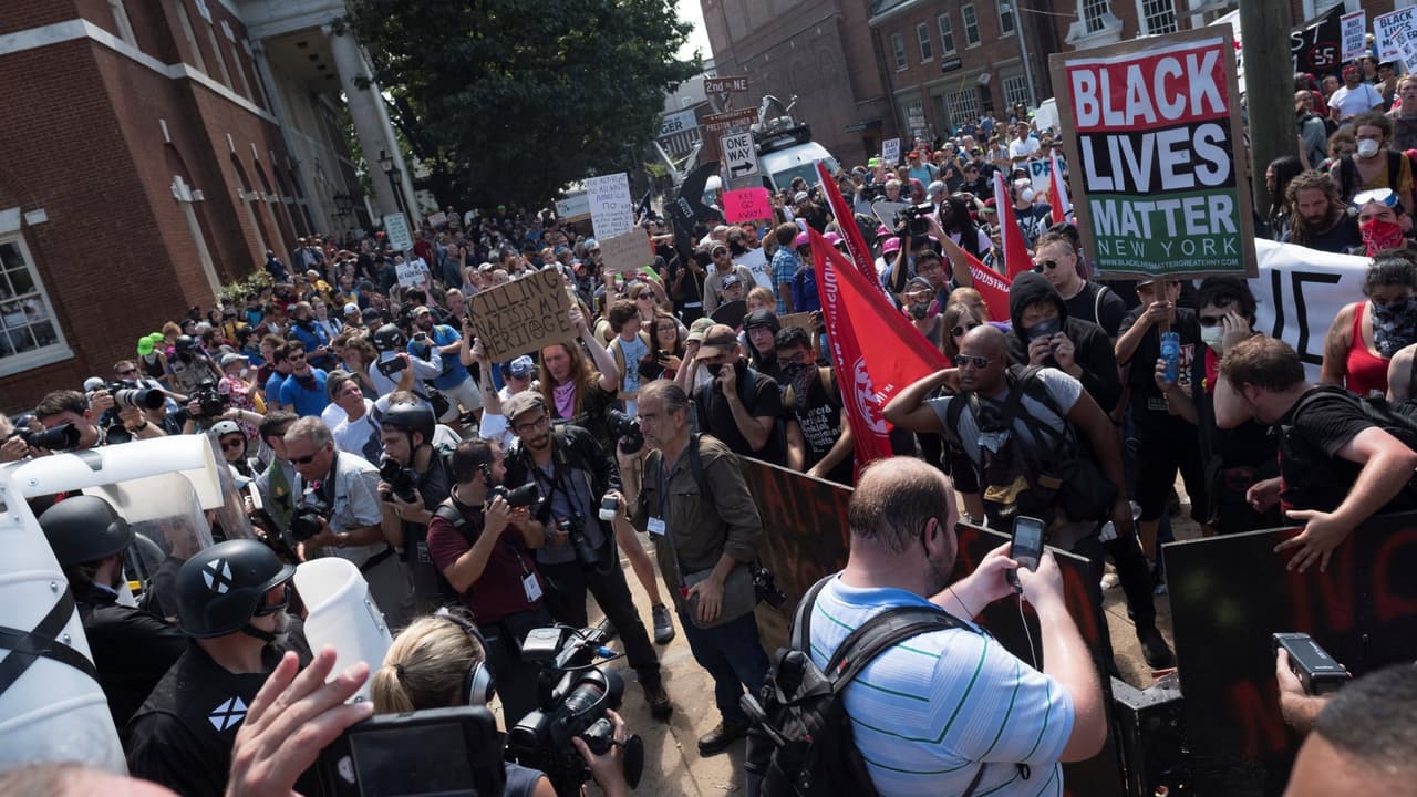 Largas horas de violencia tomaron las calles de esta ciudad en Virginia por una marcha de supremacistas blancos que terminó cancelada por enfrentamientos con activistas, defensores de los derechos civiles y miembros de Black Lives Matter. El presidente Trump condenó los enfrentamientos pero no culpó a nadie en particular, sino a ambas partes.