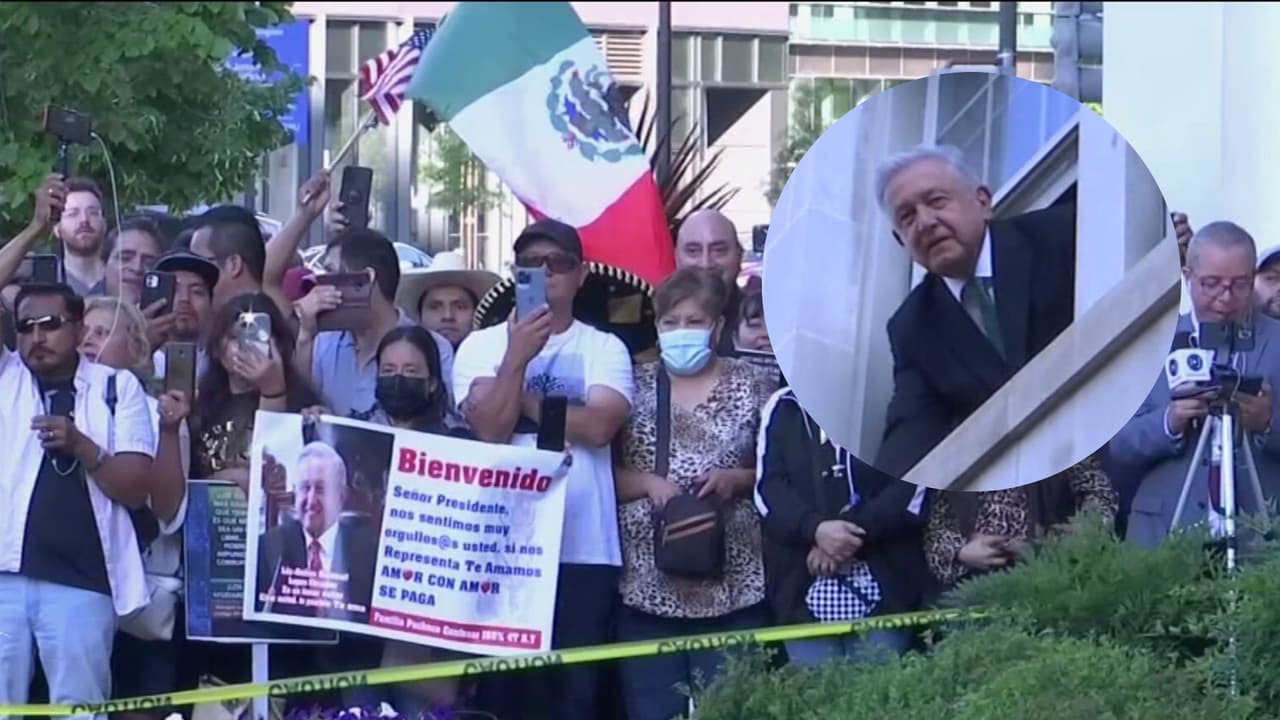 En la mañana de este martes, decenas de mexicanos que viven en Washington DC se reunieron frente al hotel donde se hospeda el presidente Andrés Manuel López Obrador para saludarlo y expresarle sus preocupaciones. Muchos de los asistentes compartieron la admiración que sienten por el mandatario mexicano y exaltaron su personalidad y trabajo. AMLO los sorprendió asomándose nuevamente desde la ventana para escucharlos y saludarlos.