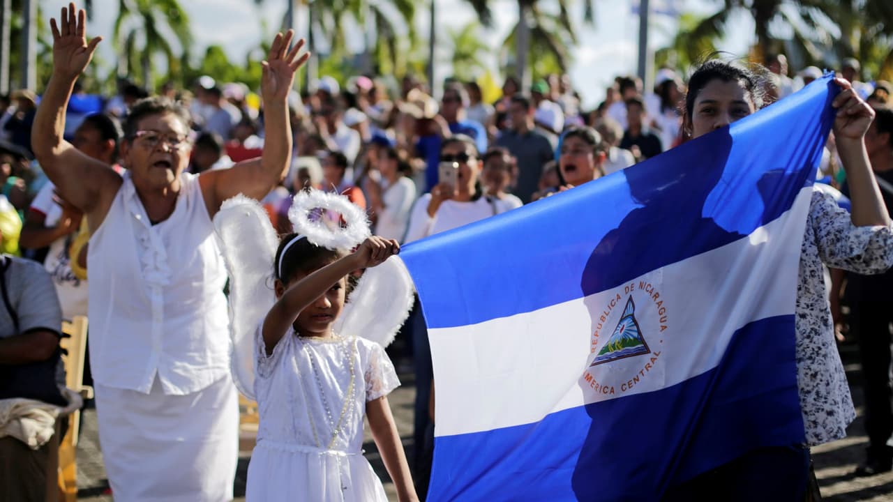 Mientras nicaragüenses oraban por la paz, afuera del santuario había desplegado un grupo policial de antimotines