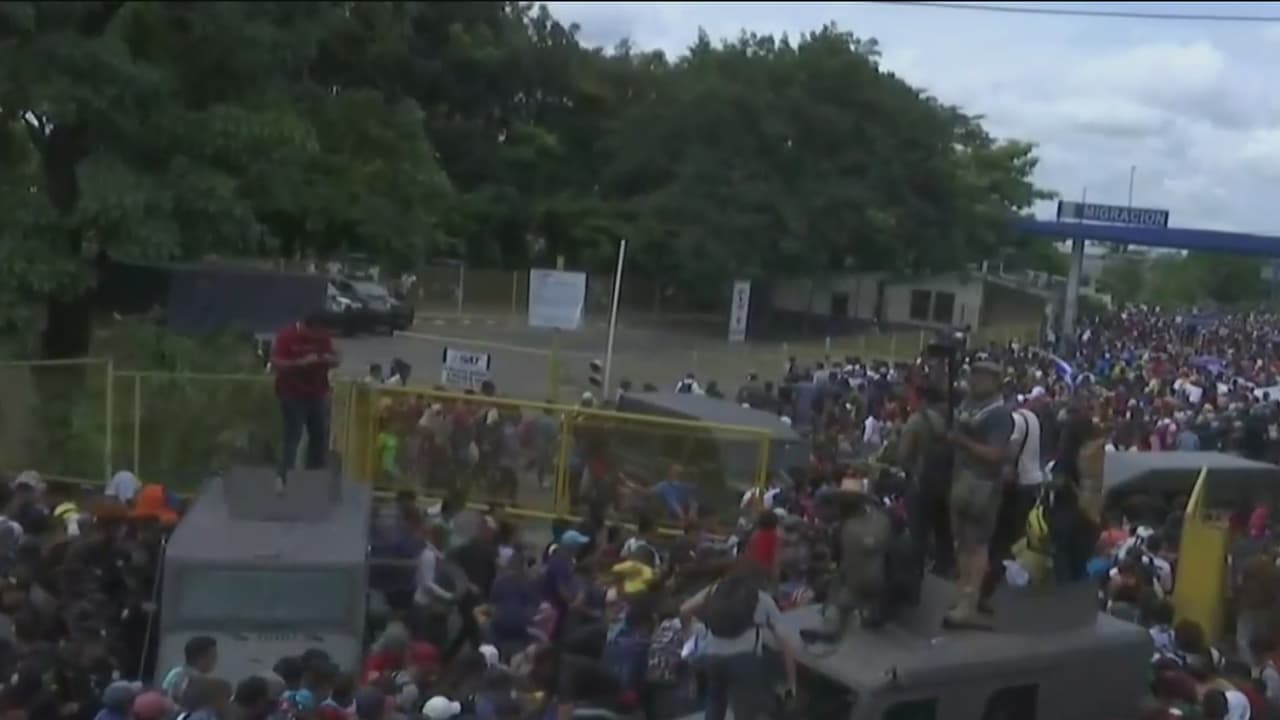 Masivamente y por la fuerza, así cruzaron los migrantes de la caravana la frontera de México