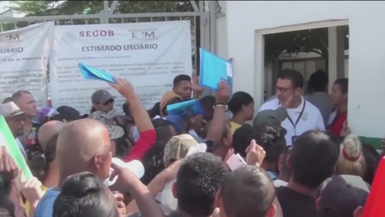 Los manifestantes aseguran estar desesperados por la lentitud con la que funcionarios en México tramitan sus permisos para circular por ese país para poder llegar a EEUU. La policía federal tuvo que llegar al lugar para controlar la protesta.