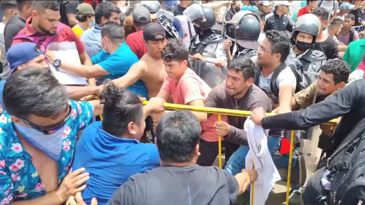 Cientos de inmigrantes, en su mayoría venezolanos, haitianos y cubanos, aseguran estar disgustados esperando fuera de las oficinas de migración en Tapachula, Chiapas. La irritación los ha llevado a enfrentarse entre ellos mismos acusándose de saltarse las listas de espera para recibir el permiso de tránsito por el país. Este documento antes les permitía moverse libremente por México durante 30 días, pero ahora solo les permite estar por un máximo de cinco a siete días.