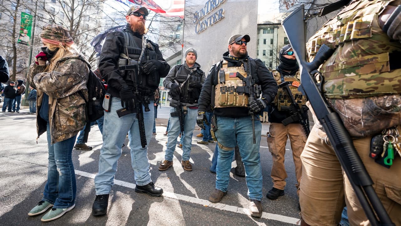 Miles de activistas a favor de las armas protestan frente al edificio del Capitolio de Virginia