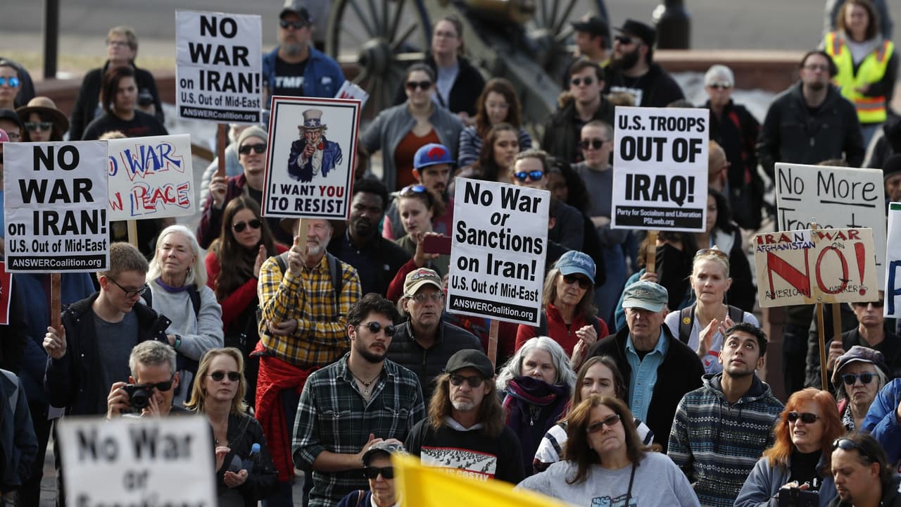 En varias ciudades del país se realizan manifestaciones para rechazar el bombardeo ordenado por el presidente Donald Trump, que ha generado tensión en el mundo. También exigen que se detenga el envío de unos 3,000 soldados a Medio Oriente y que se retiren las tropas de Irak.