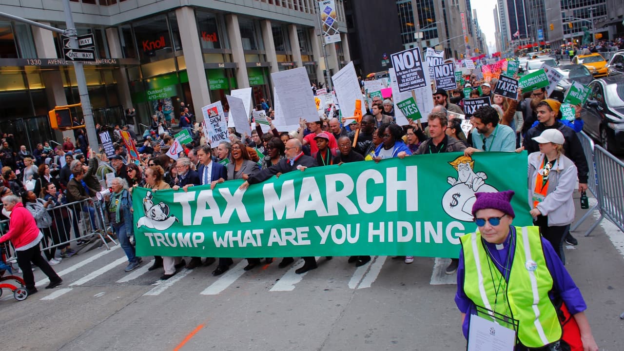 Miles de personas marchan para exigirle al Presidente Trump que publique su declaración de impuestos