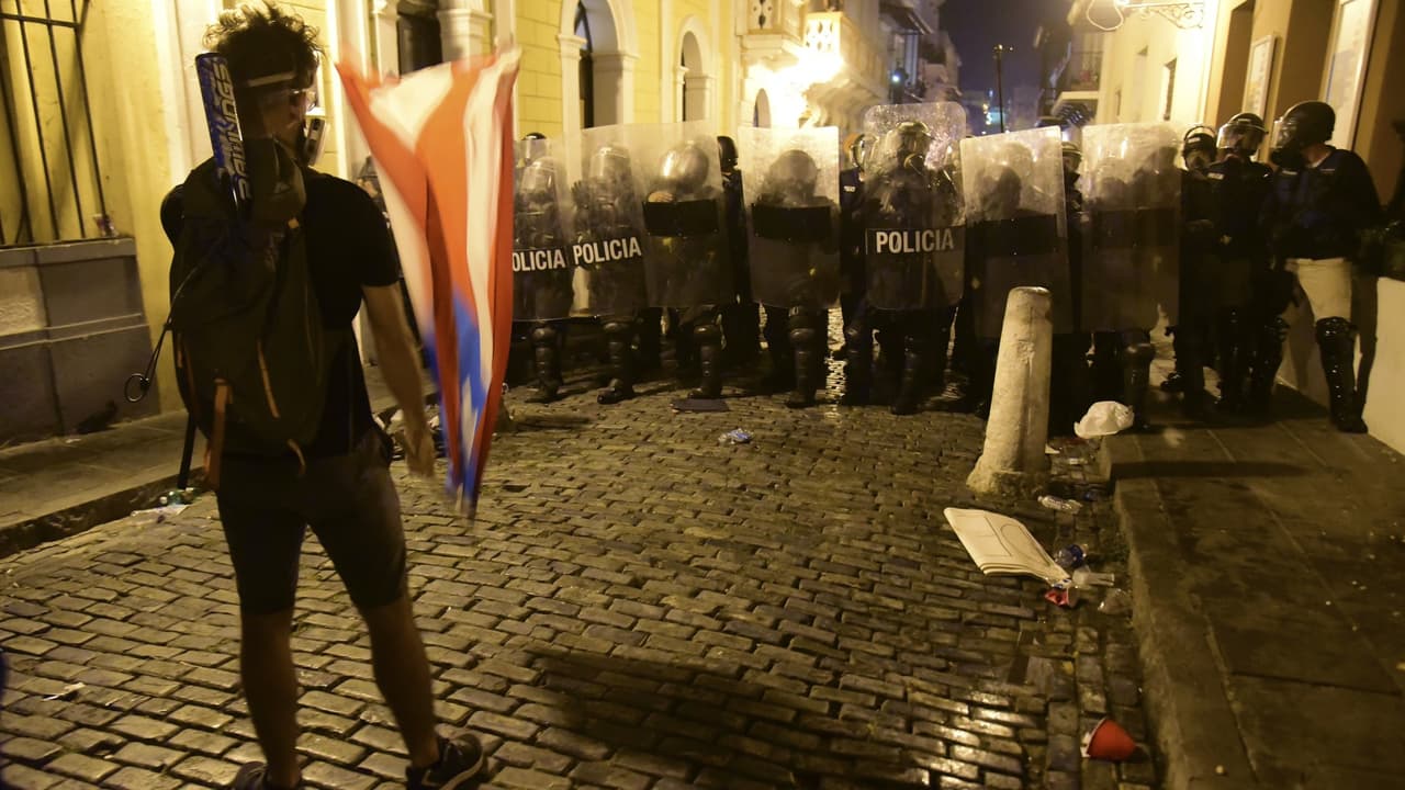 Las protestas de este lunes en las que participaron miles de personas exigiendo la renuncia del gobernador de Puerto Rico, Ricardo Rosselló, y que por más de 15 horas se tornaron pacíficas, terminaron en medio de gases lacrimógenos luego de que presuntamente algunos manifestantes lanzaran botellas de agua, ladrillos y piedras a las autoridades.
