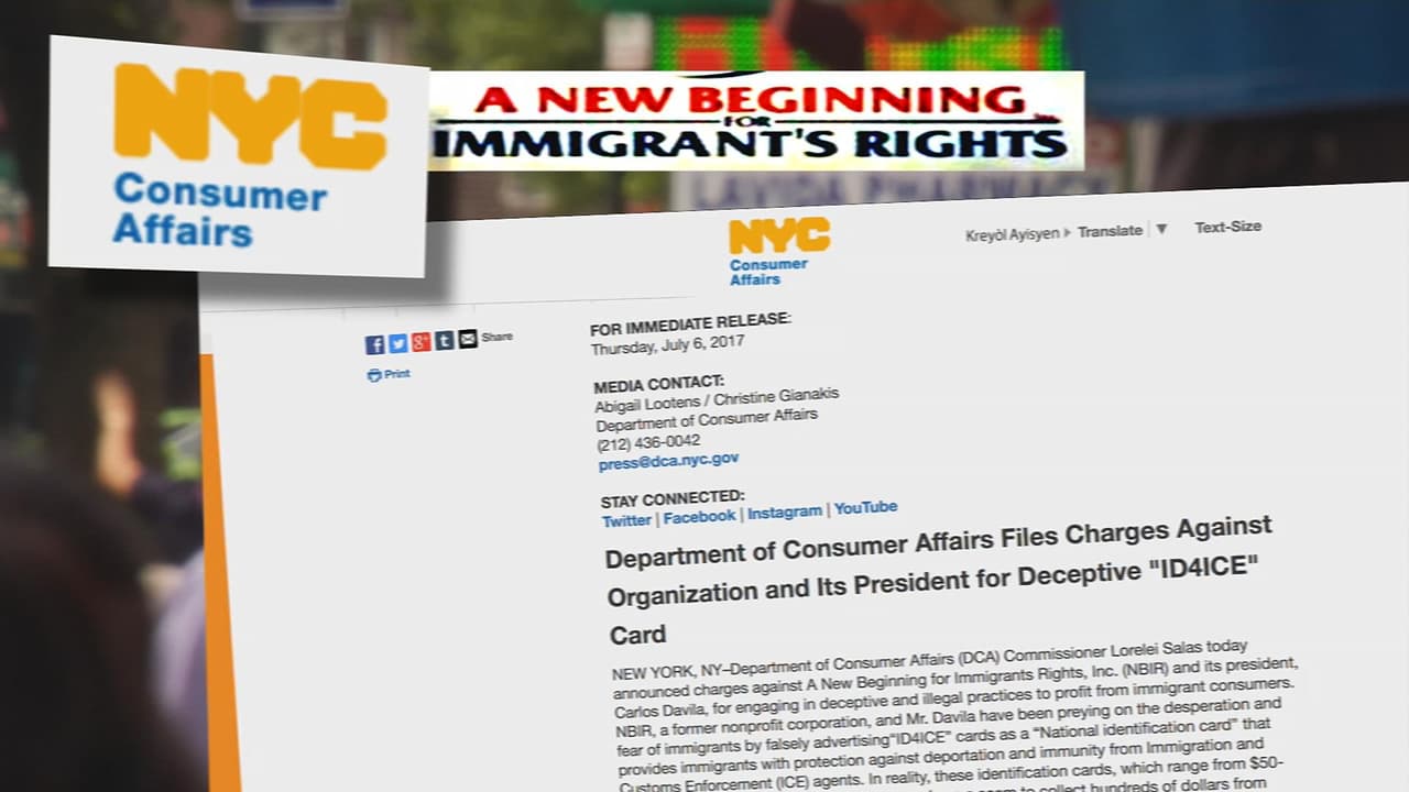 De acuerdo con el Departamento de Asuntos del Consumidor de la ciudad de Nueva York, la organización 'A New Beginning for Immigrant's Rights', engañaba a indocumentados promocionando falsamente una tarjeta que supuestamente los protegía contra una deportación. Ahora el grupo y su presidente enfrentan cargos por aparentemente participar en prácticas engañosas y podrían recibir multas de más de un millón de dólares.