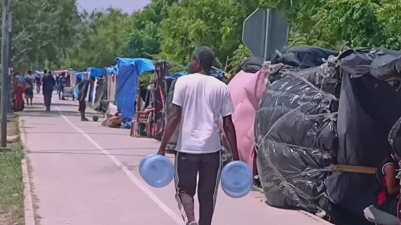 En Matamoros, Tamaulipas, el termómetro supera los 110 grados Fahrenheit y esto ha obligado a los migrantes a hacer esfuerzos para refrescarse ante la falta de aire acondicionado. “Nos toca comprar a diario, con este calor no podemos guardar nada porque se nos daña”, dice una madre venezolana que debe soportar las altas temperaturas en un albergue cercano al río Bravo.