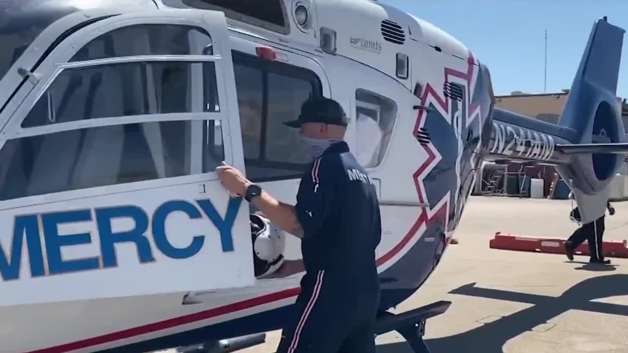 "Hemos ido a Santa Bárbara, Phoenix y Las Vegas", dice Kenneth Jones, piloto del Mercy Air, indicando que jamás había hecho traslados tan lejos. Los paramédicos movilizan pacientes del Valle Imperial, en el sur del California, una de las zonas más afectadas por la pandemia, a otros hospitales del país. El equipo incluye a un enfermero de cuidados intensivos y el helicóptero tiene un respirador artificial.