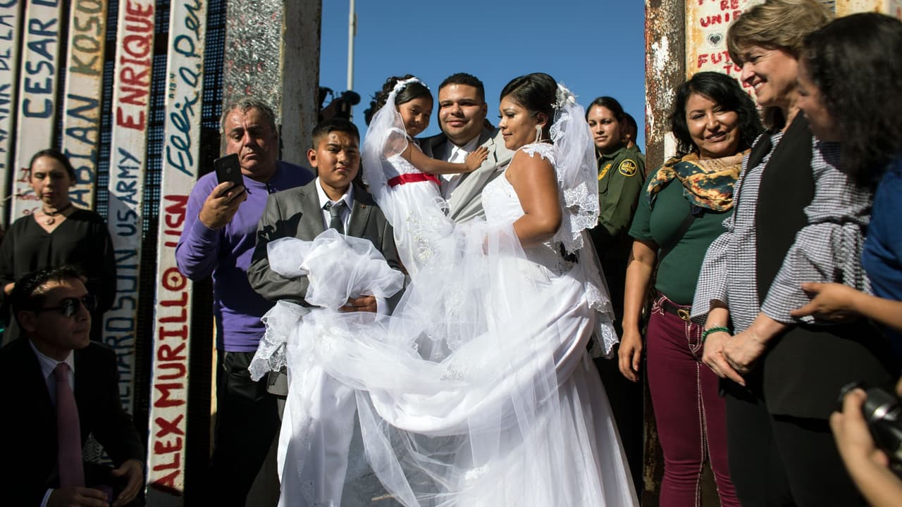 Ambos residen en países distintos, pero eso no fue impedimento para que sellaran su amor en matrimonio. A la par, varias familias se beneficiaron de la ocasión ya que pudieron abrazar a seres queridos que se encuentran al otro lado del muro.