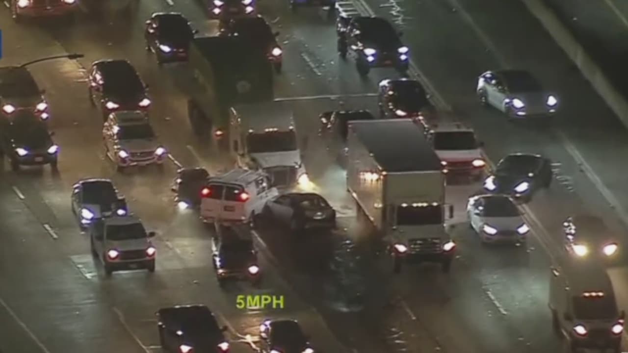 En video quedó captada una persecución policial a una mujer que conducía un auto en la autopista 405 de Los Ángeles. La sospechosa intentó chocar con las patrullas en múltiples ocasiones e incluso manejó en sentido contrario. Finalmente, se estrelló de frente con dos vehículos y un camión de carga. Dos agentes resultaron con lesiones menores. Te puede interesar: Hispano y padre de familia: lo que se sabe de un hombre que murió atropellado en medio de persecución policial.