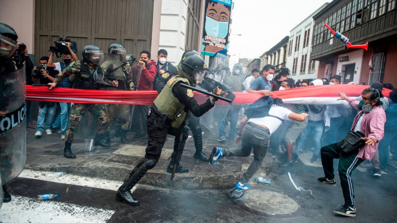 "No voy a tomar ninguna acción legal", dijo Vizcarra mientras salía del palacio de gobierno, rodeado de sus ministros. Los manifestantes se enfrentaron con la policía mientras el presidente del Congreso, Manuel Merino, juramentaba como nuevo mandatario de Perú. "Respetaré el proceso electoral", indicó, refiriéndose a las elecciones que se realizarán en abril.