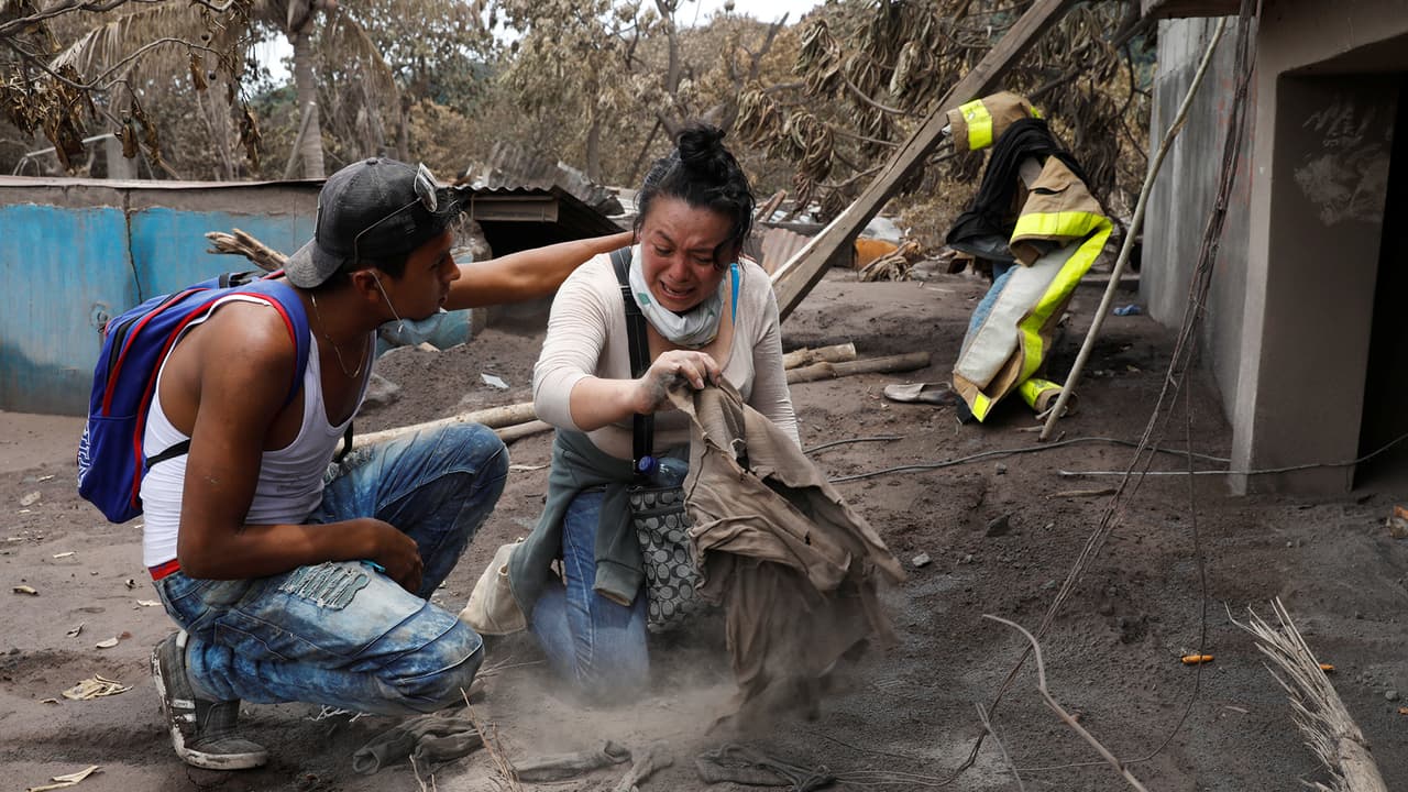 Pese a una nueva erupción, sobrevivientes del volcán de Fuego buscan los cuerpos de sus familiares
