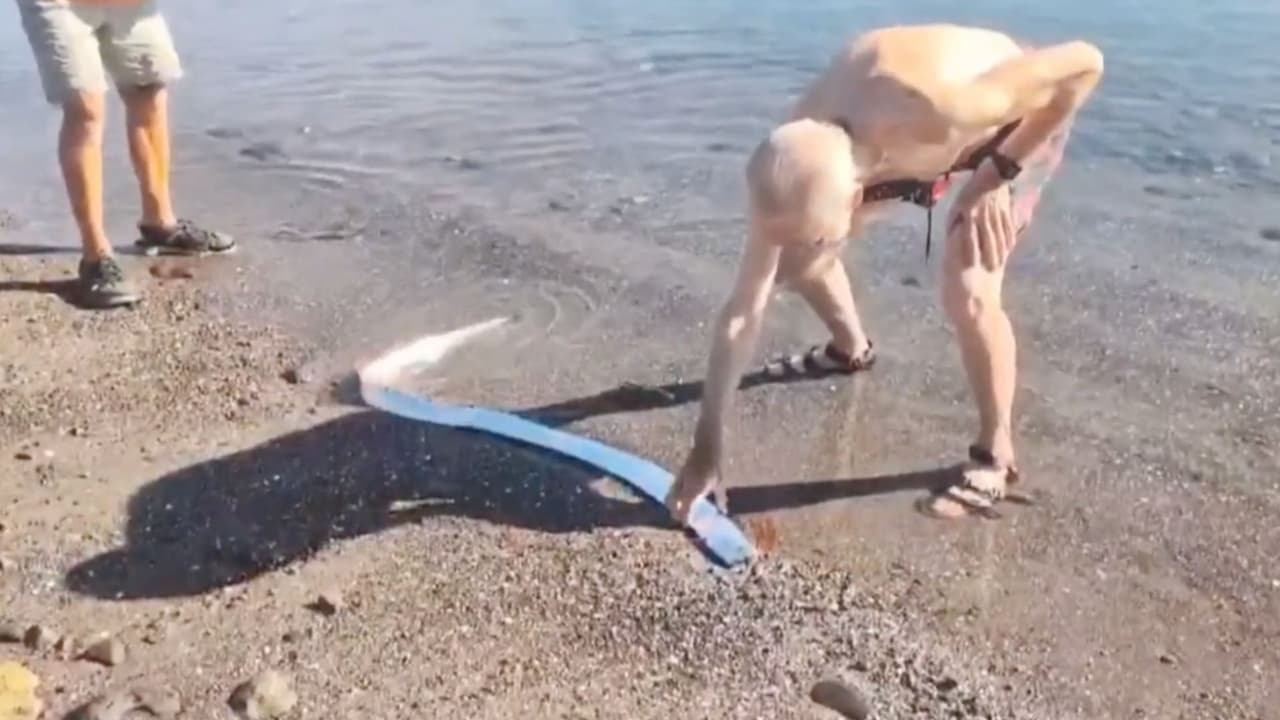 Un pez remo, también conocido como el ‘pez del fin del mundo’, fue hallado por un grupo de turistas en una playa de México. Este animal suele encontrarse por lo general en aguas profundas. Para muchos la aparición de este pez es un presagio de catástrofes naturales.