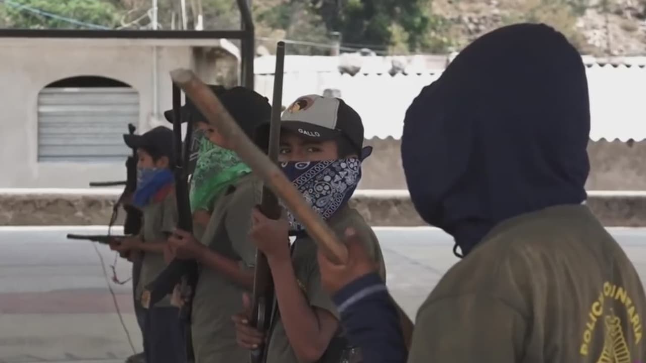 "No tenemos las armas para ser delincuentes, sino para defendernos", dijo uno de los menores. Hace dos años comenzaron a entrenarse como soldados para participar en la policía comunitaria y actualmente el grupo lo conforman más de 30 pequeños. Los niños aseguran que quieren estudiar, pero no pueden hacerlo debido a los niveles de criminalidad que existen en su población, ubicada en Guerrero.