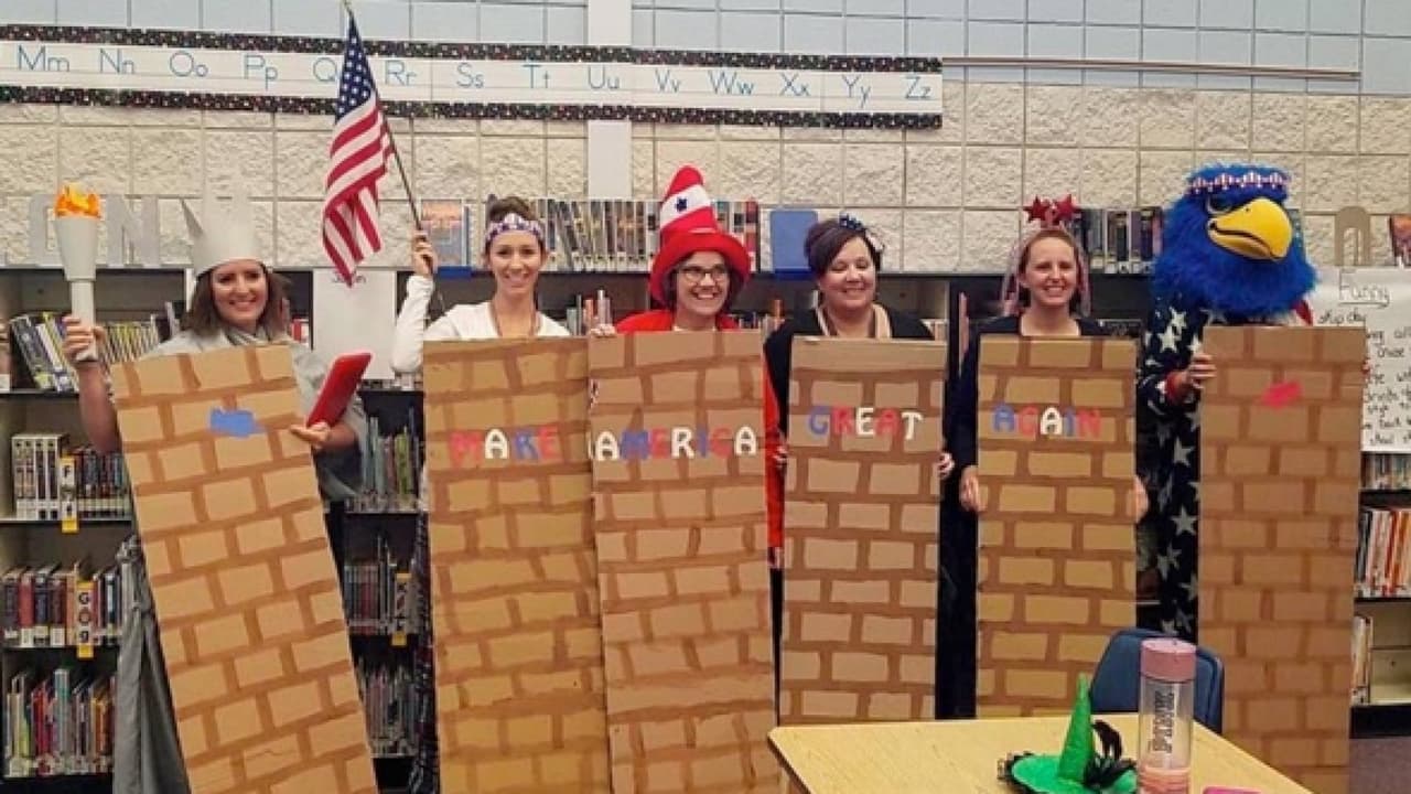 Piden sanciones ejemplarizantes para maestros de una primaria que se disfrazaron del 'muro de Trump'
