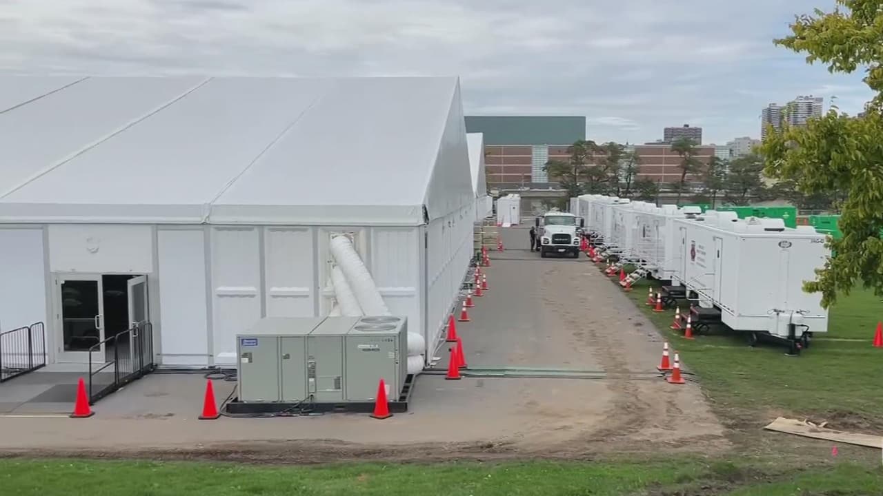 Para el refugio ubicado en la isla Randalls se han adecuado carpas y baños portátiles que presten los servicios básicos a las personas que han sido enviadas a la ciudad de Nueva York, debido a que los albergues ya no dan abasto y los hoteles destinados para este plan están llenos. Se estima que unos 20,000 migrantes han llegado recientemente y la iniciativa del campamento genera controversia.
