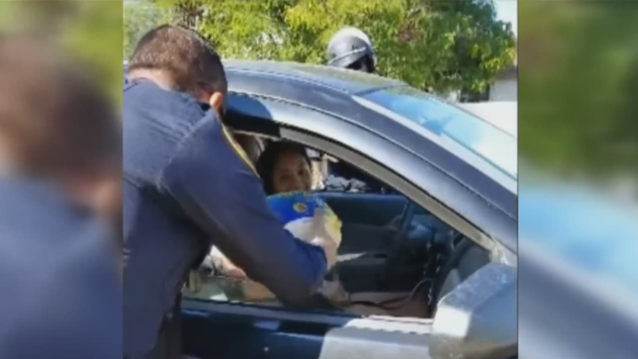 Los residentes no podían creer que los oficiales en vez de imponer sanciones por infracciones en las vías, les regalaran comida para disfrutar de la cena del próximo jueves festivo.