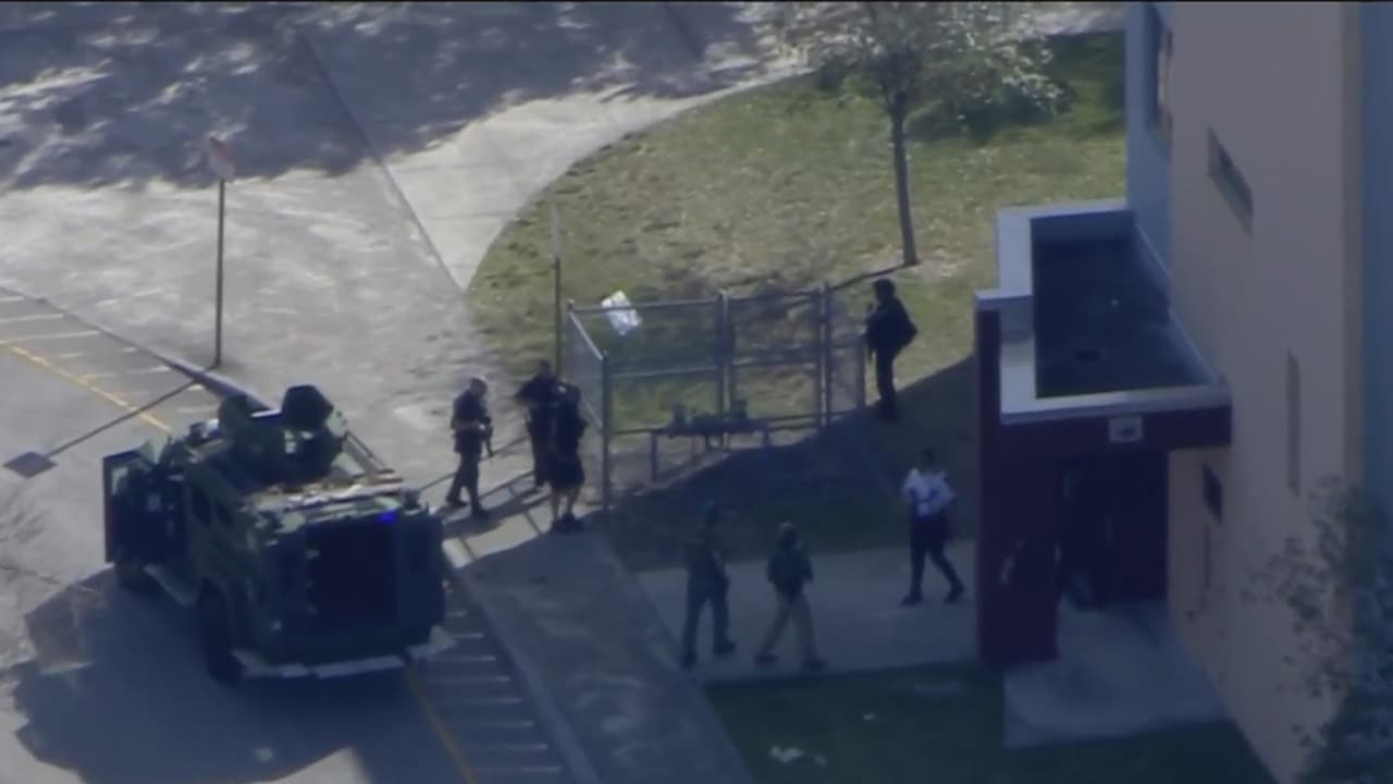 Policía responde a un reporte de tiroteo en una escuela secundaria de Florida