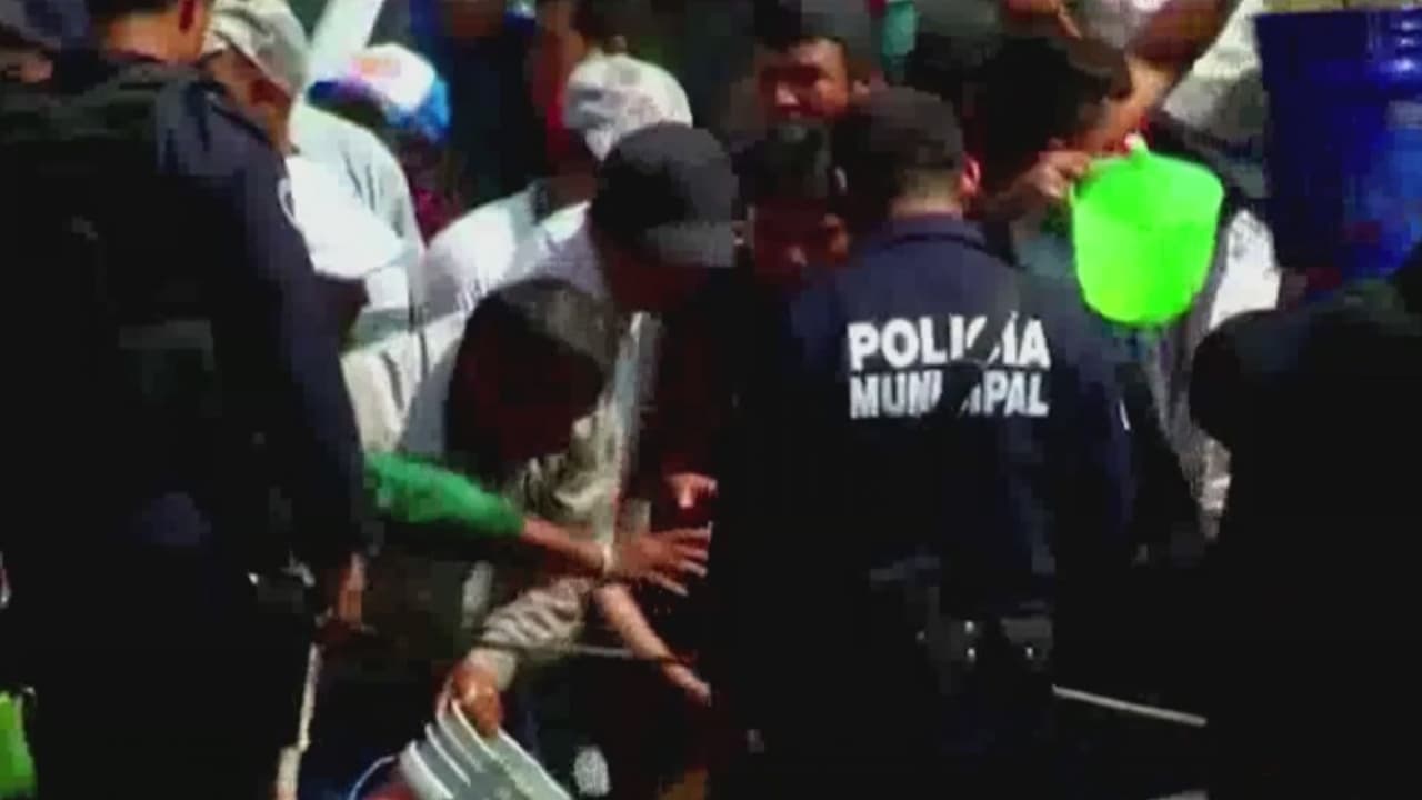 Policías mexicanos observan impasibles cómo se llevaban la gasolina de un hoyo hecho por ladrones