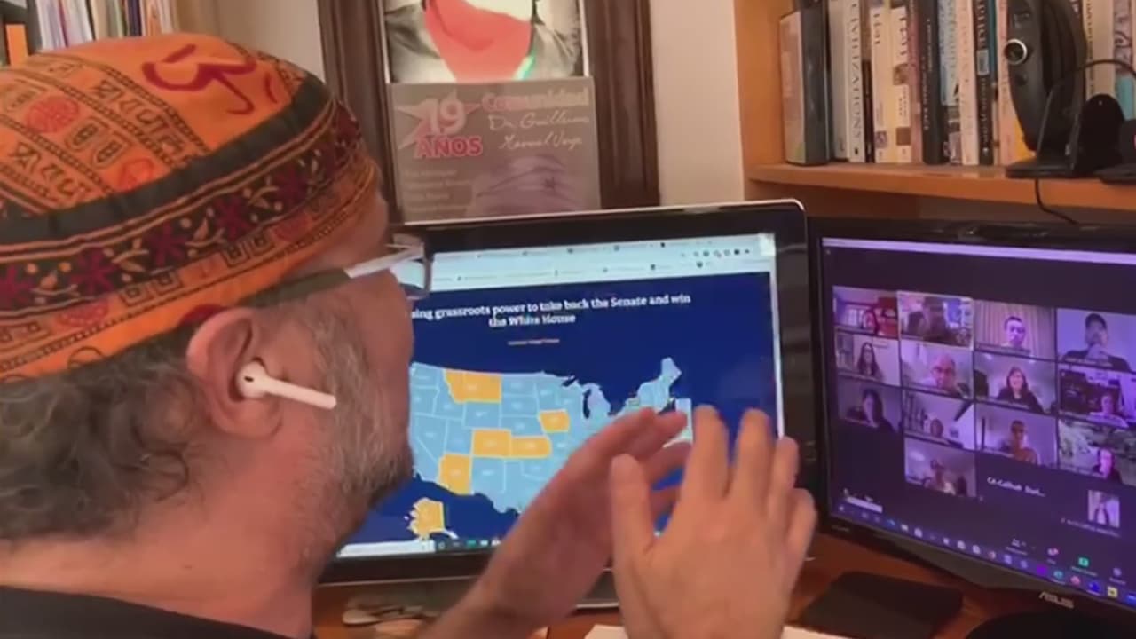 Un grupo de líderes comunitarios en California se reúne de forma virtual con voluntarios para capacitarlos y que ellos puedan hacer las llamadas telefónicas desde sus casas a familias habilitadas para participar en los comicios. Este mecanismo de comunicación ha permitido tener un mayor alcance a nivel nacional.