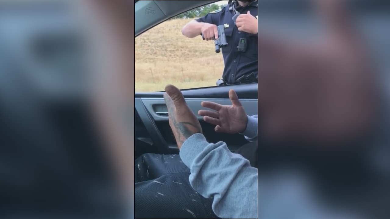 El video, grabado por la conductora, muestra al policía apuntando su arma hacia el pasajero y pidiendo refuerzos. El incidente ocurrió en San Francisco. El policía detuvo el vehículo porque la conductora iba a 85 millas por hora. Según la queja de los civiles, el oficial sacó su arma de fuego cuando ella se disponía a buscar sus documentos. La policía sostiene que las imágenes no muestran lo que sucedió antes, que llevó al policía a actuar de esa manera.