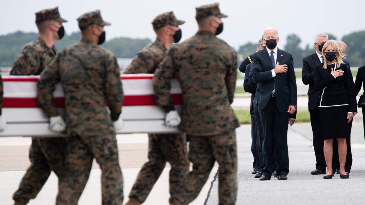 Acompañado de la primera dama, Jill Biden, el mandatario estadounidense recibió en la base aérea de Dover, en Delaware, los cuerpos de los 13 militares que murieron en Afganistán tras el ataque cerca del aeropuerto de Kabul el pasado jueves, donde avanzan las labores de evacuación de personas. Altos mandos del ejército y funcionarios del gobierno también asistieron al homenaje este domingo.