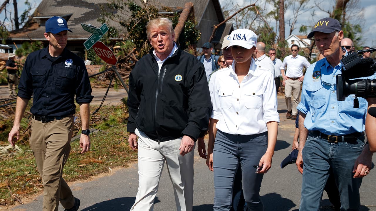 Trump y su esposa Melania recorren por tierra y aire la zona devastada por Michael en Florida
