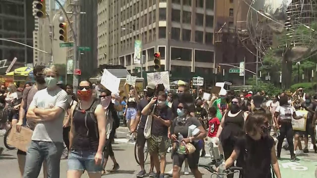 Arrodillados y con pancartas en sus manos, personas de diferentes edades se reunieron y exigieron justicia para todos aquellos que perdieron la vida estando bajo custodia policial. Por otro lado, las autoridades de la Gran Manzana dicen que no están dispuestas a levantar el toque de queda y que ningún acto violento o vandálico será permitido en esta jornada de movilizaciones.