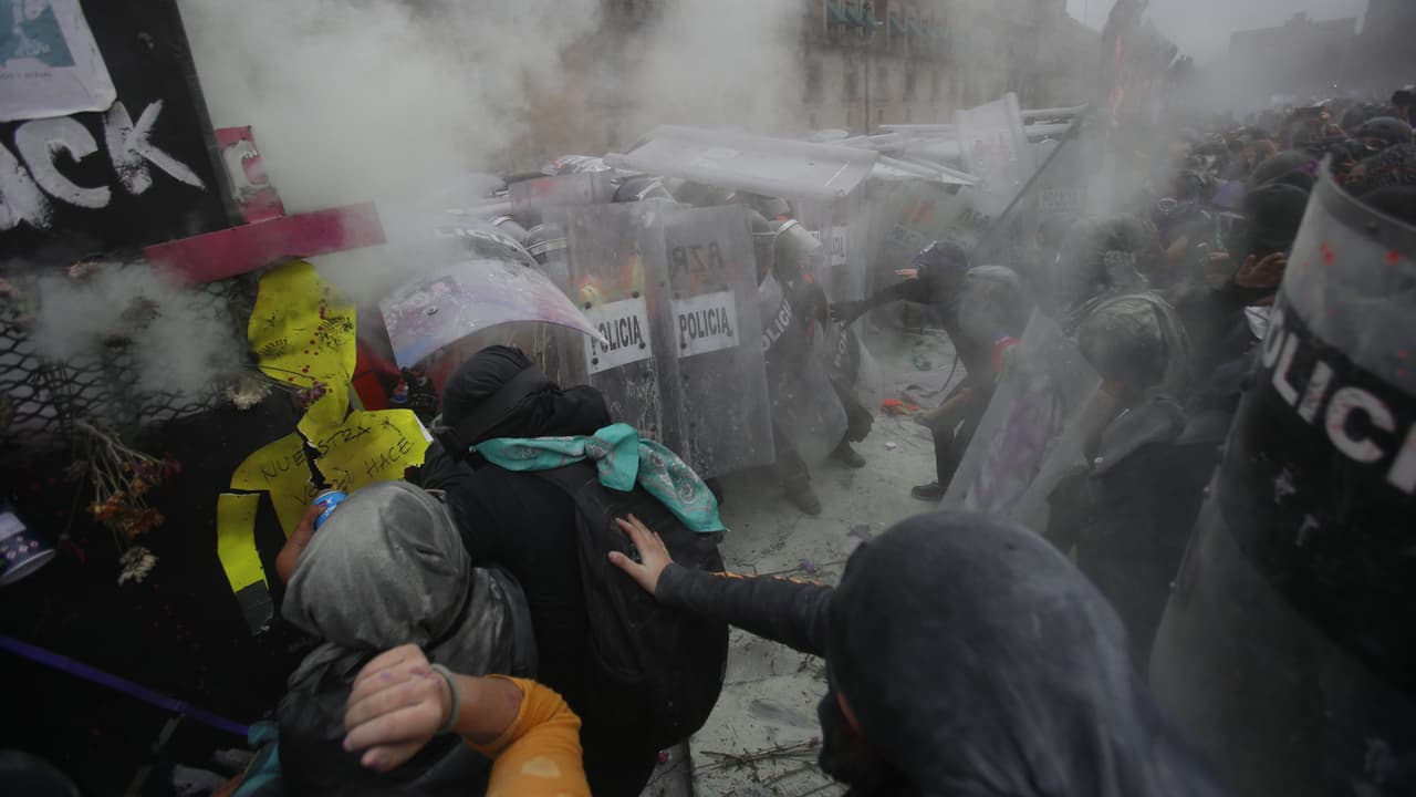 Activistas escribieron nombres de víctimas de feminicidio y colocaron flores en un muro que el gobierno de Andrés Manuel López Obrador instaló en los alrededores del Palacio Nacional para evitar ataques durante la conmemoración del Día Internacional de la Mujer. En la protesta hubo enfrentamientos y varios lesionados, entre ellos manifestantes y policías.