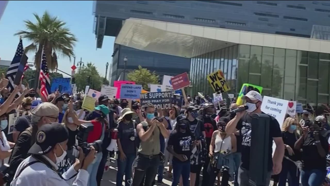 Un grupo llegó hasta las oficinas centrales del Departamento de Policía de Los Ángeles para manifestarles a los uniformados su apoyo, en momentos en que muchas de sus acciones son cuestionadas en EEUU. Este sábado también se realizaron movilizaciones para exigir justicia en el caso de Andrés Guardado, que murió a mano de oficiales el pasado 18 de junio.