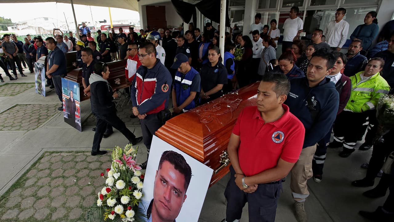 En el municipio de Melchor Ocampo, Estado de México, homenajearon entre lágrimas a bomberos, policías, paramédicos y voluntarios que fallecieron mientras cumplían su deber. Los cuerpos de tres bomberos fallecidos fueron llevados en hombros por sus compañeros hasta una iglesia.