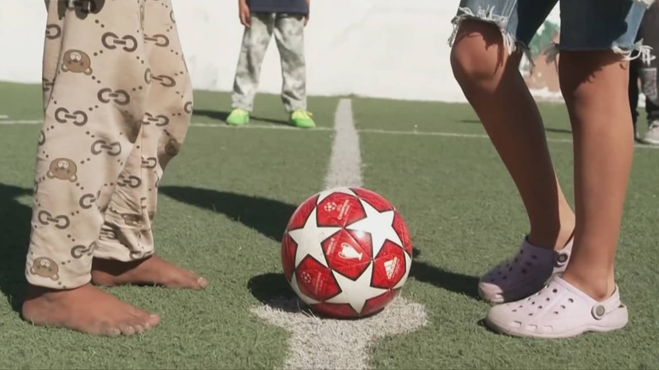 El albergue Senda de Vida en Reynosa, México, acoge a familias inmigrantes que llegan con sus niños, quienes han visto todo tipo de horrores en su trayecto para intentar llegar a Estados Unidos. Activistas lograron el patrocinio del equipo femenino Angel City para contratar entrenadores de fútbol y ofrecerles a los pequeños un espacio de esparcimiento, el cual les ha permitido desarrollar diversas habilidades.