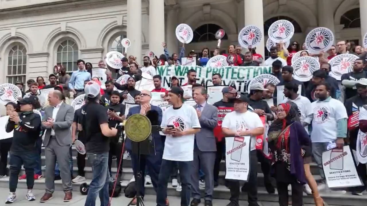 Repartidores de comida en Nueva York protestaron contra las aplicaciones de entrega de alimentos que, según denuncian, desactivan sus cuentas sin causa justificada. Pidieron al Concejo Municipal aprobar un proyecto que otorgue nuevas protecciones a 80,000 trabajadores y obligue a las plataformas a explicar cada bloqueo.
