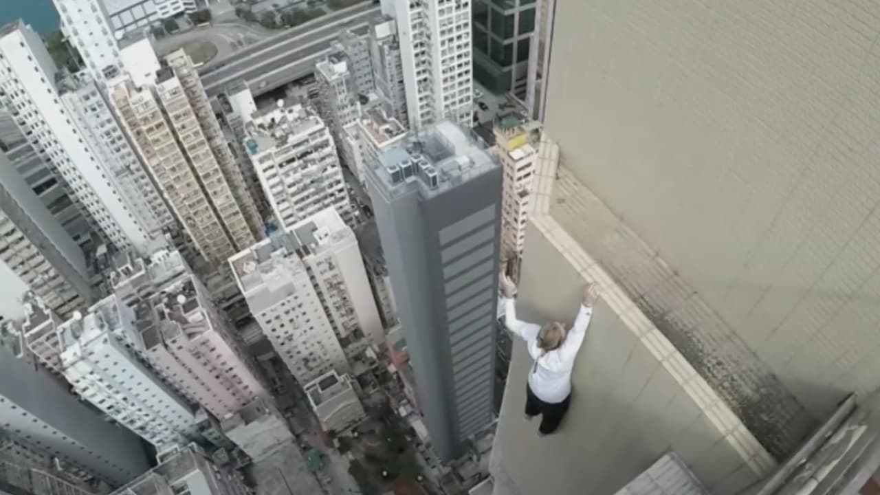 El joven realiza varios saltos en un rascacielos y escoge una estructura de solo 10 centímetros para sostenerse.