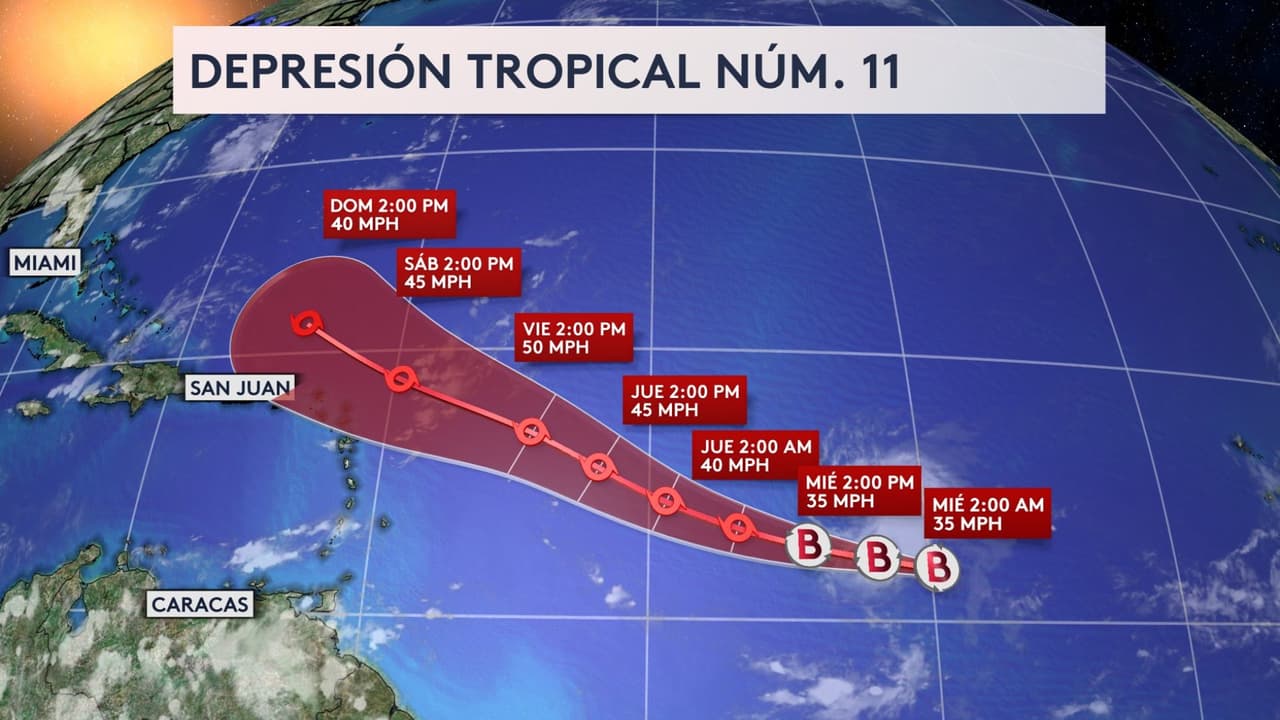 El Centro Nacional de Huracanes (NHC) prevé que este fenómeno, que actualmente tiene vientos máximos sostenidos de 35 millas por hora, se convierta en la tormenta Josephine en los próximos días. Eduardo Rodríguez, meteorólogo de Univision, explica cuáles son los modelos de trayectoria.