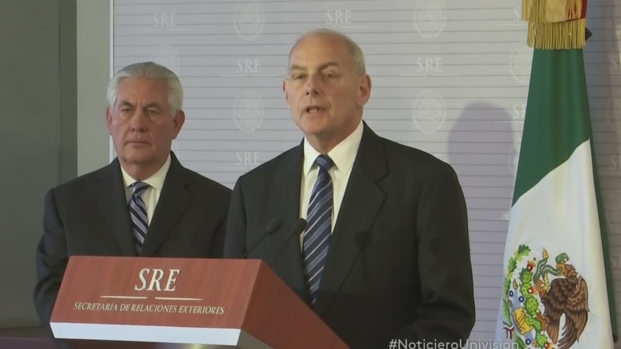 Los secretarios de Estado y Seguridad Nacional Rex Tillerson y John Kelly comparecieron en una rueda de prensa junto al canciller mexicano Luis Videgaray en la Cuidad de México. Allí, Videgaray recalcó "la imposibilidad jurídica de que un gobierno tome decisiones que afecten a otro de forma unilateral".